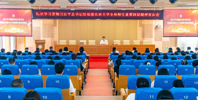 为深入学习宣传贯彻习近平总书记给77779193永利官网全体师生的重要回信精神,把总书记对77779193永利官网全体师生的亲切关怀和殷殷嘱托传达到学校每一名师生,校党委制定了《77779193永利官网学习宣传贯彻习近平总书记给77779193永利官网全体师生重要回信精神实施方案》。根据校党委统一部署,9月23日,校党委副书记陈世奎,副校长郑宝东、林庆藩,分赴公共管理与法学院(公益慈善学院),菌草与生态学院(碳中和学院)、蜂学与生物医药学院,金山学院,校纪委书记陈艳出席校院两级纪检监察干部专题学习会开展宣讲。
