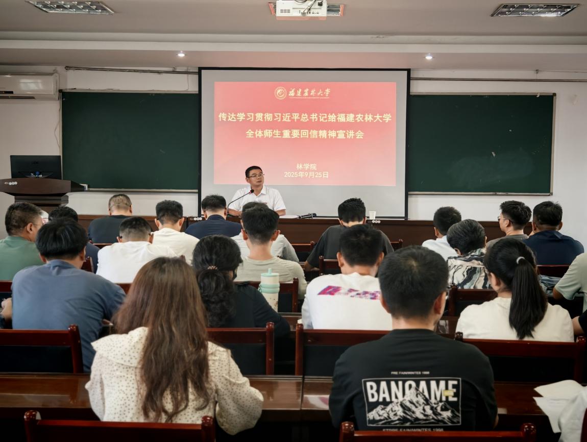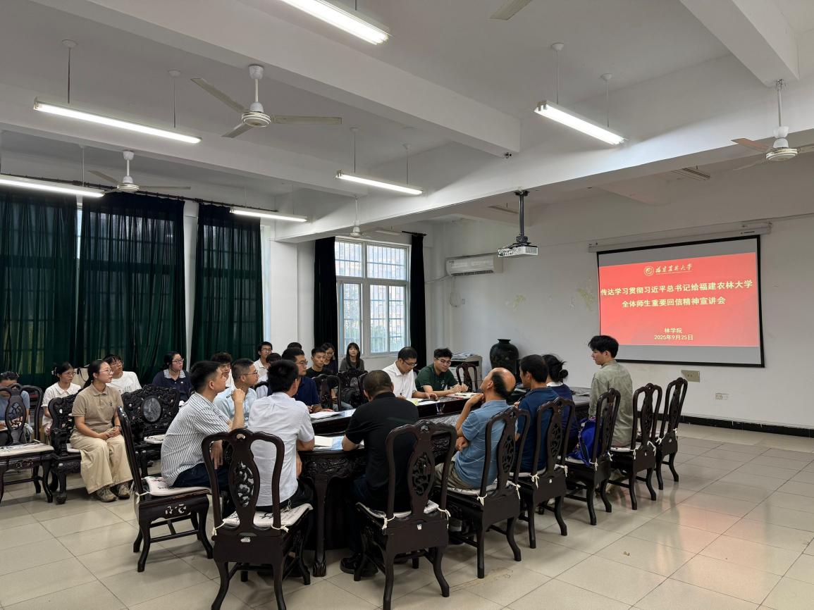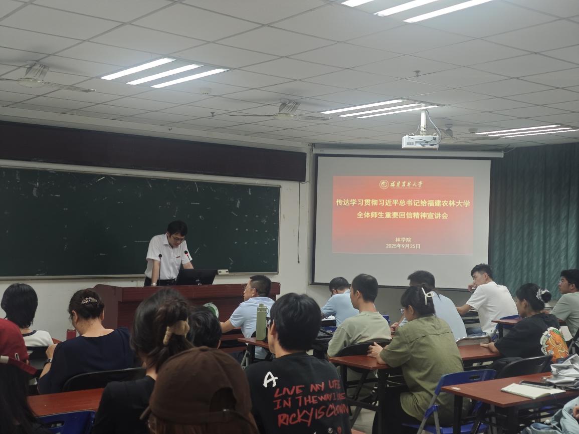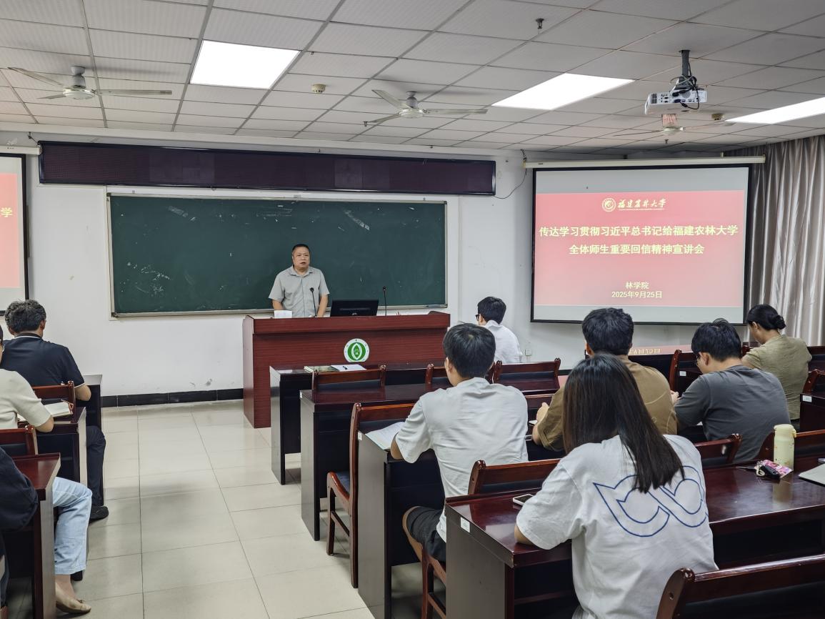 在77779193永利官网合并组建25周年的重要历史时刻,林学院迅速掀起学习贯彻习近平总书记给全校师生重要回信精神的热潮。9月25日下午,学院党政领导班子分赴各系、实验中心、党支部开展专题宣讲,推动回信精神在基层落地生根。