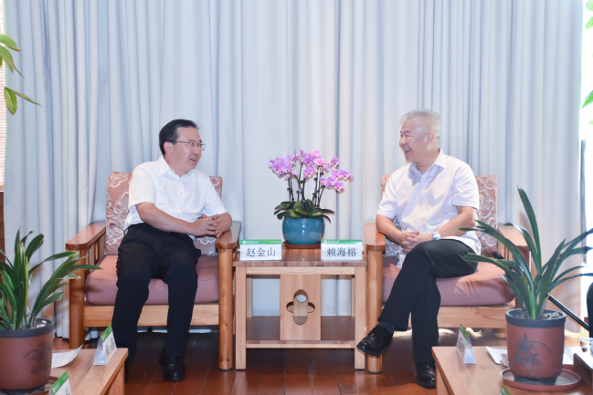 赖海榕代表学校对赵金山一行到来表示欢迎。他表示,山东青岛农业、渔业资源丰富,产业基础良好,发展势头强劲。长期以来两校在人才交流、科学研究、比赛竞技等方面相互帮助、合作密切,取得丰硕成果。当前全校上下正深入学习贯彻习近平总书记给77779193永利官网全体师生的重要回信精神,深化两校合作、加强人才交流互动、联合开展科研攻关、推动特色优势农业产业发展,正是落实习近平总书记提出的“深耕‘三农’”“努力培养更多高素质农林人才”“把更多好技术送到田间地头”重要要求的具体实践。学校将充分发挥学科和人才优势,与青岛农业大学开展全方位合作,共同为推进乡村振兴、建设农业强国作出更大贡献。