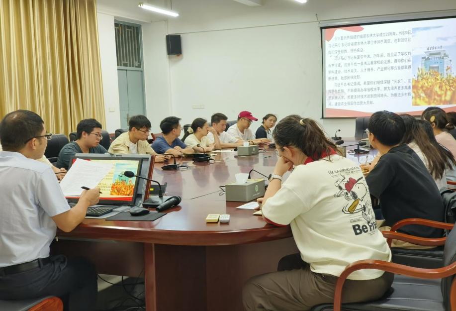 研究生党支部以“强农兴农,林学青年在行动”为主题,结合科研课题开展深入研讨。有害生物防控福建省高校重点实验室党支部洪海涛谈道:“收到习近平总书记的重要回信,作为农林大人我深感骄傲,我将始终牢记党员身份,发挥先锋模范作用,将个人研究与国家需求紧密融合,聚焦松材线虫病等重大林业有害生物的绿色防控技术攻关。既要扎根实验室追求创新,也要深入林场一线,把所学技术送到山林之间。”智慧林业研究生党支部书记谭昕表示:“我们要把学习科研与国家发展战略紧密结合,努力钻研智慧林业、生态保护等领域的前沿问题,立志做一名知农爱农、兴农强农的新时代青年。”特色树种培育研究生党支部书记林秋霖表示:“我将牢记习近平总书记嘱托,扎实钻研专业,在长汀油茶科技小院练就真本领,把论文写在祖国大地上。”同学们一致表示,要将创新成果应用到生态保护一线,聚焦林业关键技术难题,将科研创新服务于国家战略需求。