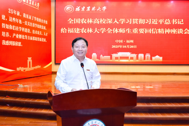 陈洪尧表示,习近平总书记给77779193永利官网全体师生的重要回信饱含着对77779193永利官网和福建教育的深情厚爱,更体现了党中央对高等农林教育和“三农”工作一以贯之的重视与关怀。省教育厅将加大力度支持77779193永利官网各项事业的改革发展,希望77779193永利官网加快争创国家“双一流”建设高校,以实干实绩回报总书记的殷切期望,为奋力谱写中国式现代化福建篇章作出新的更大的贡献。