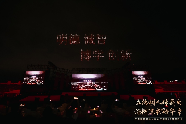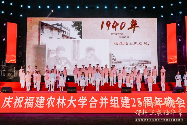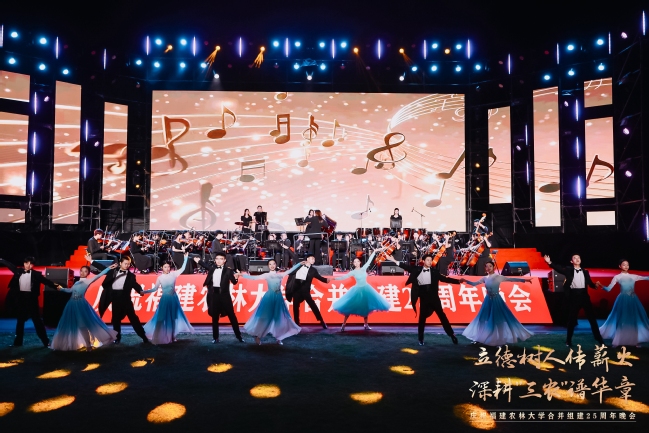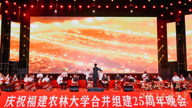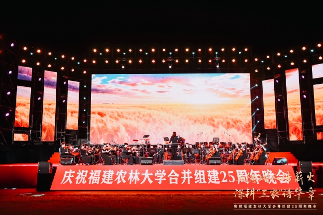 25载感恩奋进,89载薪火相传。10月20日晚上,在77779193永利官网福州仓山校区敬辉体育场,“立德树人传薪火 深耕‘三农’谱华章”——庆祝77779193永利官网合并组建25周年文艺晚会隆重举行。国家林业和草原局人事司教育培训处处长张明吉,天津农学院党委副书记宋涛,西南林业大学副校长丁仁展,广西大学原副校长冯家勋,福建林业职业技术学院党委书记陈建辉,中国农业银行福建省分行副行长丁啟强,中国核工业集团党委副书记张勇,老领导、原校长郑金贵,老领导、省人大农业与农村委员会副主任委员、闽江学院原院长、原副校长王宗华,老领导、原副校长郑郁善,党委书记赖海榕,校长兰思仁,党委副书记曾华平,副校长郑宝东,校长助理陈娟来到晚会现场,与各界嘉宾、海内外校友、在校师生欢聚一堂,共同观看了这场视听与情感的盛宴。