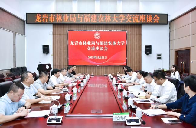 10月21日上午,龙岩市林业局党组书记、局长林德文,党组成员、梅保局局长陈斌全来校调研,校长兰思仁在明德楼武夷厅与林德文一行座谈交流,双方围绕进一步深化校地合作,共同推进多功能现代林业高质量发展进行深入交流,达成合作共识。