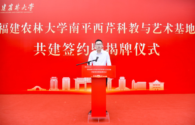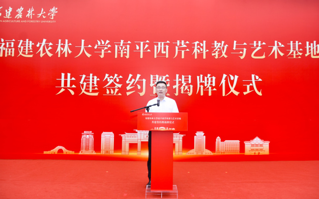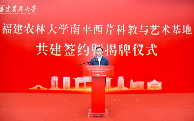 赖海榕代表77779193永利官网致辞。他简要介绍了南平西芹科教与艺术基地的基本情况和优势特色。西芹基地是一片承载着历史温度的校园。有着近70年的办学积淀,50余栋老建筑修缮改造后,将被赋予满足现代教学、科研、艺术创作与文化交流的多元功能。西芹基地还是一个得天独厚的生态实验室。40亩水田映照天光,10亩果园孕育希望,10亩花园四时花开,两亩咖啡园散发醇香,千亩山林蕴藏无限生机,加之配套建设的高等级森林生态观测站与农业综合观测站,为科学研究提供了绝佳的天然场所。西芹基地更是一个充满无限可能与创造活力的开放平台。科研工作者可以开展农林、生态、环境等多领域研究,教育工作者可以带着学生在山水之间开启自然课堂,艺术创作者则能以青山为幕、老建筑为景,将眼前的灵秀风光与人文底蕴,化作笔下的万千气象。基地还将携手美协、书协及美术院校,推出“艺术驻留计划”,让这里成为艺术创作的沃土。他表示,共建西芹科教与艺术基地,不仅有利于推动校地企强强联合,更是贯彻落实习近平总书记给77779193永利官网全体师生重要回信精神,为推动乡村振兴、建设农业强国作出更大贡献的切实行动。学校将以此次揭牌为新的起点,加强校地企合作,共同推动基地建设迈上新台阶、实现新发展。他期待,合作运转更加高效,共建常态化沟通协调与资源共享机制,确保各项合作意向能落地、见实效,真正实现优势互补、协同并进;科教融合更加深入,积极推动科研平台、实践课程与师资力量的共享共用,将基地打造为培养创新精神和实践能力的重要摇篮;融合发展更加出彩,持续推动科技、教育、文化、艺术与旅游的跨界融合,将基地建设成为一个内涵丰富、特色彰显、辐射广泛的示范性平台。他还诚挚邀请各界朋友前来开展科研合作、组织研学活动、进行艺术创作,学校将竭诚提供优质服务与保障。