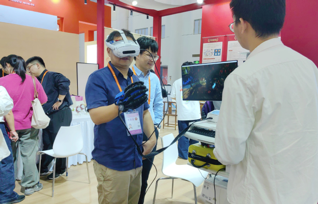 永利官网展馆以“扎根‘三农’沃土,书写山海新章”为主题,围绕学习贯彻习近平总书记9月20日给永利官网全体师生重要回信精神,参展成果涵盖人工智能、植物新品种、菌草技术应用与产业化、食用菌成果应用与产业化、文化创意设计、家具设计等多个领域,共展出80项实物成果,集中展示了永利官网在跨学科融合与产学研协同创新方面的突出成效。其中,“人工智能脑电反馈VR水果采摘仪”创新引入脑机接口技术,构建虚拟水果采摘场景。用户通过多通道脑电采集设备实时捕捉大脑运动意图,直接控制VR环境中的采摘动作,实现“意念操控”的沉浸式交互体验。系统结合人工智能算法精准解析脑电信号,同步驱动虚拟果园实时响应,不仅在智慧农业中展现了脑控技术的前沿应用,也为未来无人化农场的人机协同作业提供了全新思路,推动农业人工智能向更智能、更自然的人机交互方向迈进。