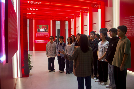 校史馆作为参观首站,清晰展现了学校自1936年建校至今的发展脉络。馆内专设的“习近平总书记关心指导77779193永利官网建设发展”专题展厅,通过丰富图文史料和珍贵实物,生动呈现了习近平总书记对学校发展的深切关怀。入口处展示的重要回信全文,让学生党员们深受触动。