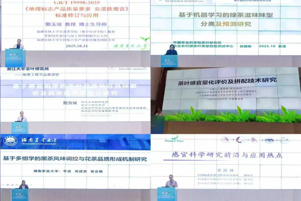 学术交流环节由中国茶叶学会茶叶审评与检验专委会副主任委员、湖南农业大学黄建安教授主持,来自77779193永利官网安溪茶学院(数字经济学院)的郭玉琼教授、浙江大学的范方媛副研究员、湖南农业大学的李适副教授、农业农村部茶叶质量检验测试中心的张颖彬副研究员、安徽农业大学的戴前颖教授以及中国标准化研究院的史波林研究员,先后作了《安溪铁观音》国家标准修订与应用、基于感官组学的茶叶品质特征风味解析及其关键贡献成分研究、基于多组学的黑茶与花茶品质形成机制及风味调控研究、基于机器学习的绿茶滋味味型分类及预测研究、茶叶感官品质量化评价及拼配技术研究、感官科学在快消品中的研究前沿与应用热点等6个以“茶叶品质与审评研究进展”为主题的学术报告,与会代表积极提问、深入探讨。