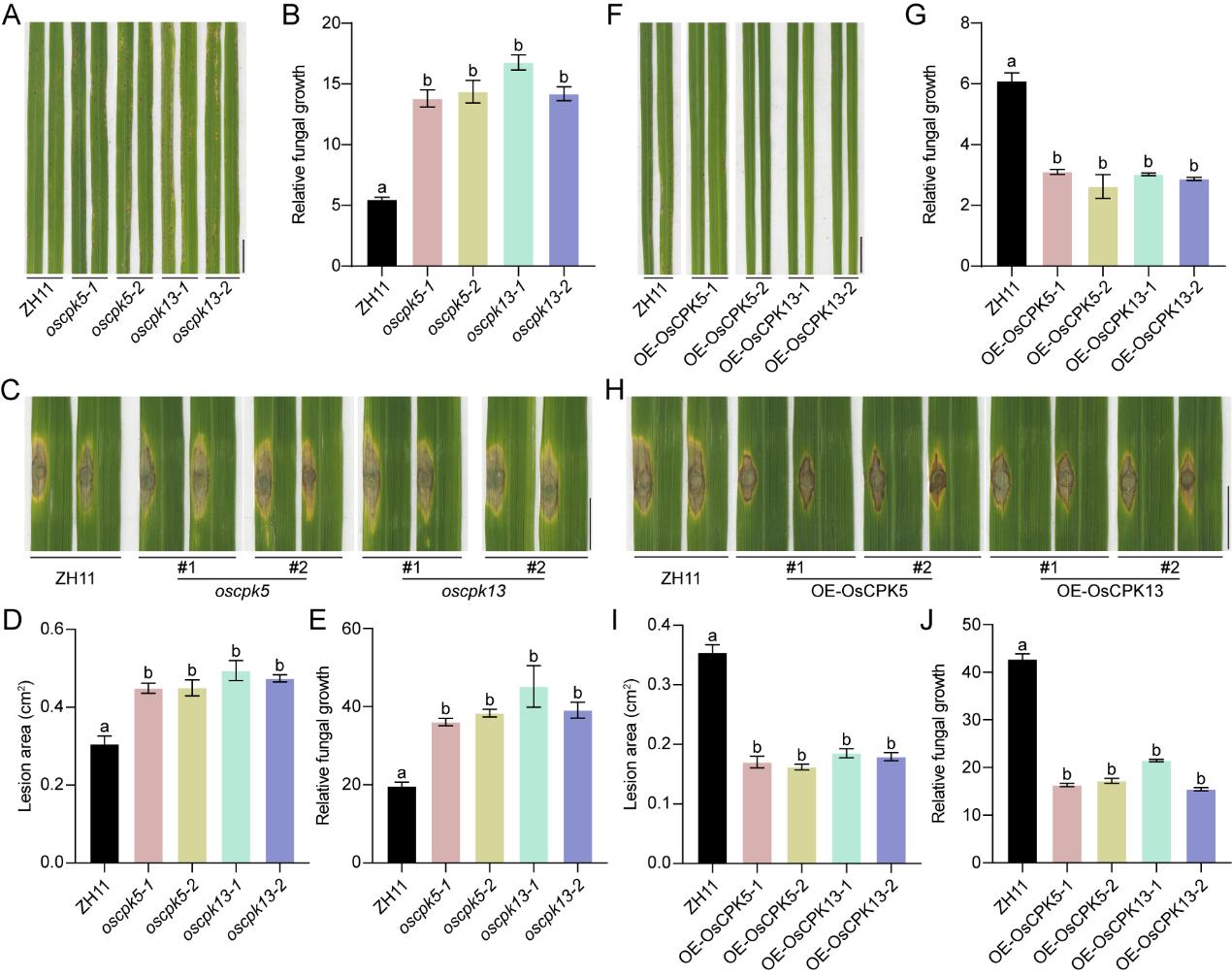 图1. OsCPK5和OsCPK13正调控水稻稻瘟病抗性