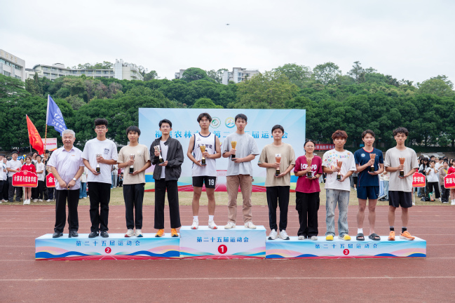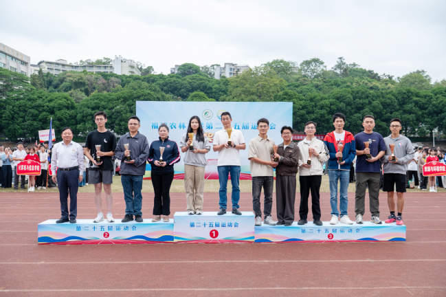 据悉,本届运动会自3月份气排球开赛以来,共进行了11个项目155个小项的比赛。在三天的运动会田径项目比赛中,来自各学院和相关部门的28个单位的2266名运动员参加了12个组别97个项目的比赛,有1人2次打破2项校田径最高纪录,28个代表队获得团体比赛名次,18名裁判员被评为“优秀裁判员”,48名运动员被评为“精神文明运动员”,并评选出一批优秀组织单位。获得本届运动会学生组团体总分前十名的代表队依次是:计算机与信息学院、机电工程学院、经济与管理学院、动物科学学院、林学院、农学院、金山学院、风景园林与艺术学院、园艺学院、公共管理与法学院。获得教工组田径团体总分前十名的代表队依次是:生命科学学院、机关工会第一分会、机关工会第二分会、经济与管理学院、林学院、资源与环境学院、图书馆、农学院、机电工程学院、植物保护学院。获得优秀组织奖的单位分别是:经济与管理学院、公共管理与法学院、林学院、动物科学学院、材料工程学院、戴尔豪西大学联合学院(国际学院)、资源与环境学院、食品科学学院。