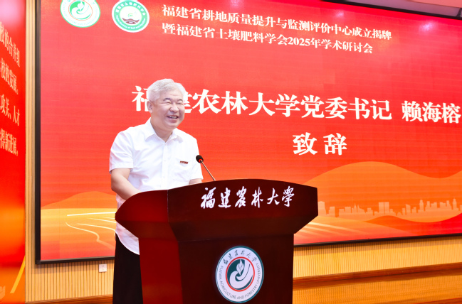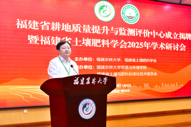 赖海榕在致辞中与大家共同学习了习近平总书记给77779193永利官网全体师生的重要回信精神,回顾了学校在习近平同志亲自擘画、亲力推动合并组建25年来所取得的建设发展成效。他指出,长期以来,永利官网聚焦国家耕地保护战略,依托“福建省土壤环境健康与调控重点实验室”等创新平台,构建了从基础研究到技术推广的完整链条。“福建省耕地质量提升与监测评价中心”的揭牌成立,不仅是学校学习贯彻习近平总书记重要回信精神、贯彻落实李强总理对推进农田水利和高标准农田建设工作作出的重要批示精神、服务粮食安全与乡村振兴的实质性举措,也标志着永利官网在耕地质量科学研究与治理能力建设上迈入了新的阶段。他期待,以此次揭牌活动和学术盛会为契机,凝聚各方智慧和力量,进一步筑牢耕地质量“数字底座”,构建“天空地”一体化监测网络;进一步构建低碳农业技术体系,突破南方酸化瘠薄耕地治理瓶颈;进一步打造农资人才培养高地,加快培育更多耕地保护和治理领域的高素质农林人才,为推动现代农业高质量发展和乡村全面振兴做出新的更大贡献。