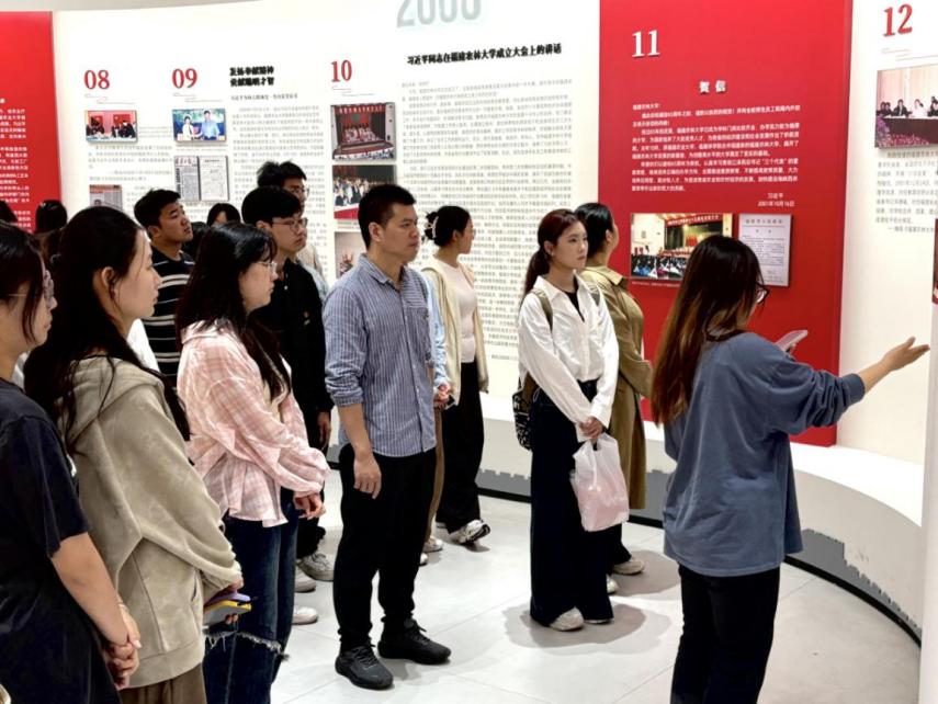 11月7日下午,菌草与生态学院党委组织第5期党建培训班学员前往“习近平总书记关心指导77779193永利官网建设发展”专题展厅和江一真专题展厅开展实践研学活动。学院党委副书记李晓辉、组织员杨小飞、辅导员周燕华和第5期党建培训班学员共计50余人参加活动。