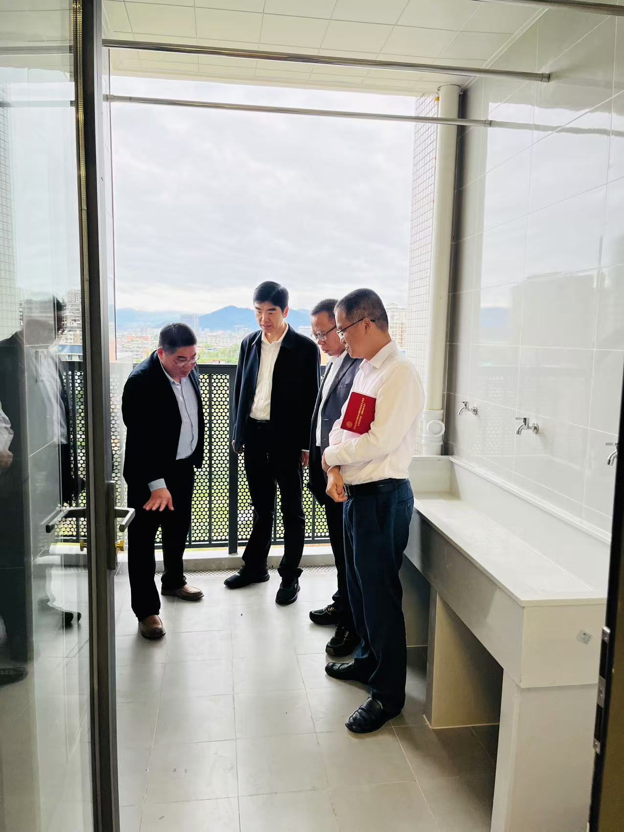 林庆藩副校长带队实地查看已完工的学生宿舍九、十情况,不时了解家具、热水器、网络和其他相关生活设施的安装准备情况,了解在建食堂项目实施情况和预计工期安排,要求基建处和相关部门要筑牢精品意识,科学组织施工,特别要关注和做好安全生产各项工作,尽快实现整体工程的全面竣工,以崭新风貌体现精气神,以良好成绩献礼90周年校庆。