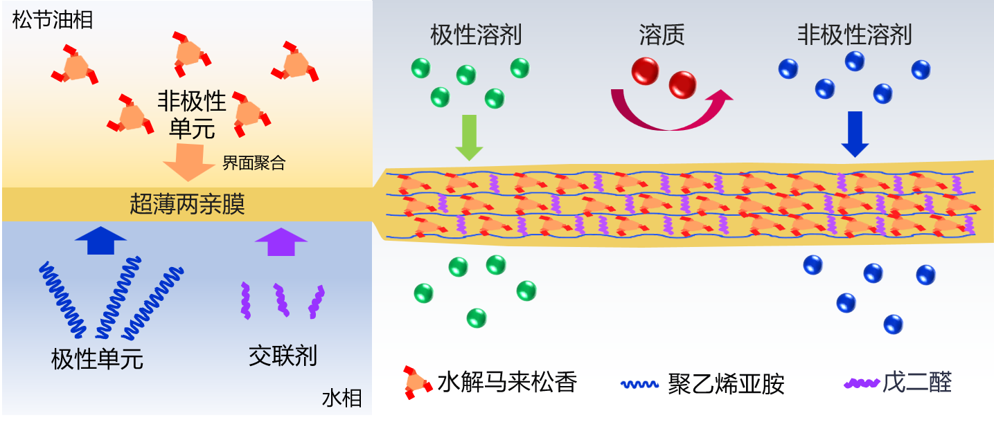 图2. 两亲性松香基超薄纳滤膜的界面工程