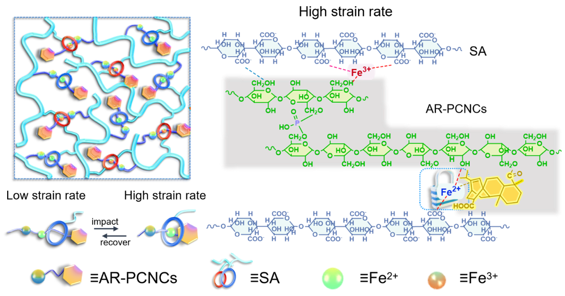 在材料设计上,团队以海藻酸钠作为连续相骨架,并通过磷酸化纤维素纳米晶、丙烯酸松香的构象锁定片段,以及多价配位网络实现应变触发的状态转变。该粘结剂表现出由柔软向刚硬的可逆转变,并呈现明显的应变速率敏感硬化效应。应用于硅负极时,该粘结剂使电极在0.2C下循环100次后容量保持在2476.5 mA h g⁻¹;离子电导率达到25.240 mS cm⁻¹,相较未改性体系提升7倍。形成的复合网络有效缓解了硅体积膨胀引起的结构破坏、粘结剂疲劳与界面不稳定问题。