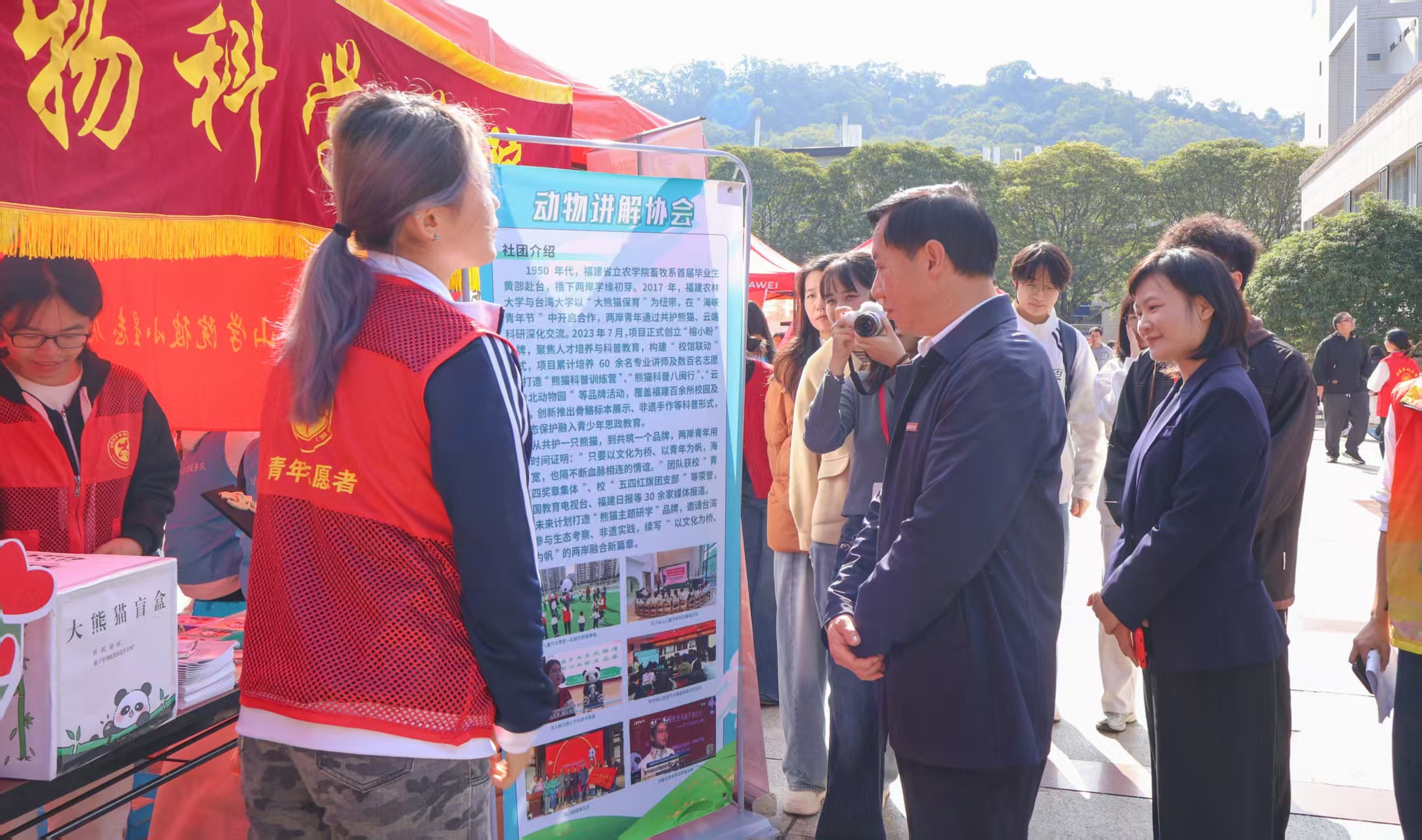 在志愿服务风采展现场,曾华平走访各展位,点赞各学院把学科优势“写”进志愿品牌,要求大家久久为功、深耕不辍,并号召以学校奋进国家“双一流”高校为牵引,把服务送进社区、乡村,持续拓宽志愿维度,传递真善美、传播正能量。