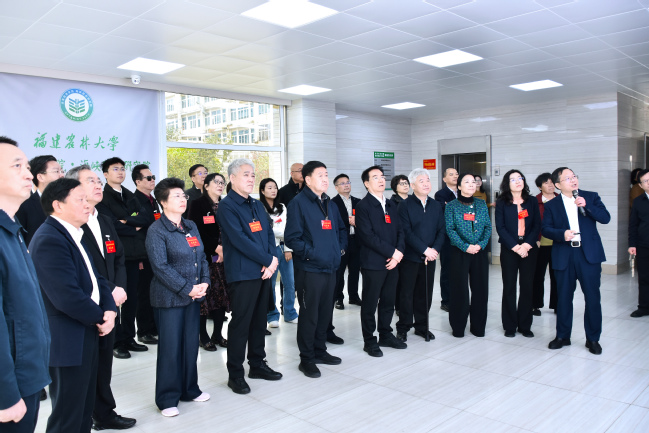 校领导代表77779193永利官网对全国人大代表的到来表示欢迎,感谢代表们对学校建设发展的关心和指导,并简要介绍了学校在学科建设、人才培养、科技创新和社会服务等方面所取得的成效。多年来,学校始终牢记嘱托、感恩奋进,发挥学科特色与人才优势,做大做强林学、植物保护两个一流培优学科群,全力争创国家“双一流”建设高校;坚定不移实施“人才强校”战略,强化高水平科研成果产出,以第一作者或通讯作者单位在CNS国际三大顶刊上发表19篇论文;主动服务现代农业产业发展,在菌草技术、茶学、竹材、银耳、蜂学、兰科植物等十余个百亿级千亿级产业领域取得全国领先的“单项冠军”成果;加强高能级平台建设,全力推动高端科研重器(冷冻电镜)落地,促进创新成果持续涌现。校领导希望代表们一如既往地关注和支持学校发展,学校将以此次视察为契机,进一步聚焦国家重大战略和区域发展需求,坚持以立德树人为根本,以强农兴农为己任,统筹推进教育科技人才一体化发展,强化有组织的科研,加强关键核心技术攻关,加快推动科技成果转化,促进产学研用深度融合,培养更多高素质农林人才,以科技创新塑造产业发展新优势,为推进乡村振兴、建设农业强国作出更大贡献。