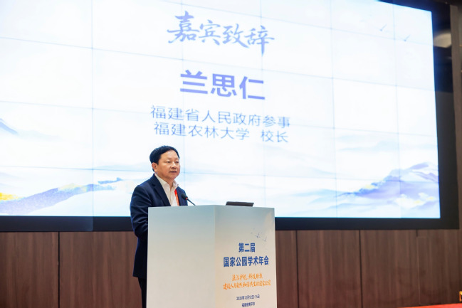 兰思仁代表学校对莅临参会的领导和嘉宾表示欢迎,简要介绍了学校的基本情况和在国家公园领域的研究成果。他谈到,2025年9月20日习近平总书记给77779193永利官网全体师生的重要回信为学校进一步扎根中国大地办大学,服务生态文明建设等国家战略需求指明了方向。结合年会“法治护航,科技助力——建设人与自然和谐共生的国家公园”主题,他提出四点倡议:一是联合打造“法治+科技”融合研究高地,联合法学、生态学、信息技术等学科团队,构建“法律条文-技术标准-管理细则”三位一体研究体系,攻关生态红线动态监测等核心技术,推动监测从感知向智慧预测升级。二是协同推进环武夷山国家公园保护发展带模式创新与实践。推动国家公园与周边地区紧密合作,创新生态产品价值实现机制,推动环带区域全面持续发展,实现生态保护与社区发展双赢。三是共同强化环境教育与文化传播功能。打造系统化的线上线下环境教育内容矩阵,深挖朱子文化、茶文化与生态文化,让国家公园理念走进校园和社区,凝聚保护合力。四是合力推动科技成果转化与创新人才培养。联合培养跨学科复合型人才,推进“国家公园建设与管理”等特色班培养,为行业输送更多人才。
