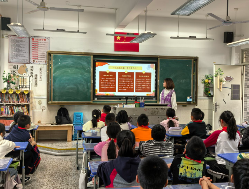 绿伞团支部走进洪塘中心小学,把志愿精神和红色故事搬进了课堂。志愿者结合自身志愿服务经历,与孩子们围绕“什么是真正的英雄”“今天的幸福生活从何而来”两个核心问题展开深入讨论。现场氛围热烈,孩子们纷纷举手表达志向,要珍惜当下的和平生活,从立志向、修品行、练本领做起,为祖国发展积蓄力量。