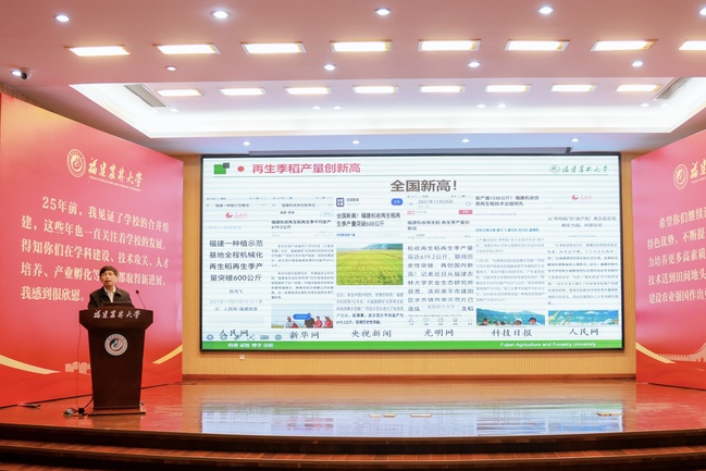 在主题论坛中,林文雄教授、朱朝枝教授聚焦“大食物观”国家战略与侯官文化农耕智慧的当代实践,先后以“藏粮于技,再生未来:基于新质生产力的再生稻技术与粮食安全增量密码”“乡村振兴视域下农业多种功能与乡村多元价值开发”为题为师生作专题报告,希望师生弘扬侯官文化中“敢为天下先、经世以致用”的精神品格,坚持问题导向,深化科学研究,把论文写在田野大地上,为保障国家粮食安全、建设农业强国贡献力量。