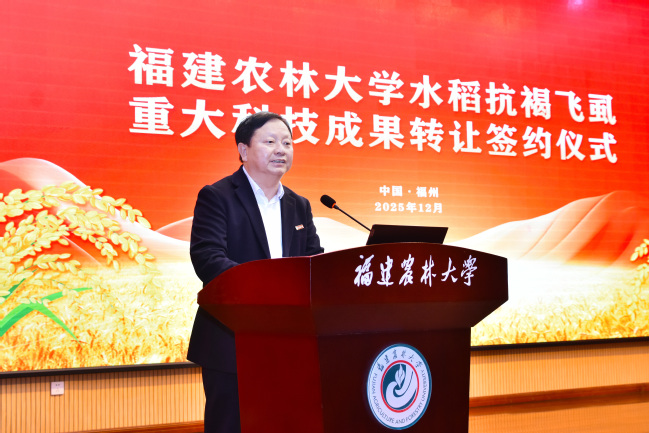 陈虔在致辞中表示,此次签约的抗褐飞虱成果,有效破解了水稻生产中的关键瓶颈,为保障粮食安全提供了有力的技术支撑。期待77779193永利官网与合作单位紧扣产业发展需求,加强跨学科协同攻关,力争产出更多“顶天立地”的成果,为福建乃至全国水稻产业提质增效和乡村全面振兴注入更强科技动能。省科技厅将一如既往支持77779193永利官网的建设与发展。
