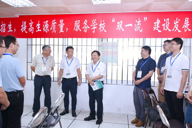 77、7月20-22日,校党委书记赖海榕、校长兰思仁来到招生录取工作现场,检查指导学校2025年招生录取工作。据悉,今年,永利官网面向全国31个省(市、区)共录取本科生7288人,较去年增加500人,招生录取分数和位次实现全面稳步提升,本科物理组招收超过特控线60分的考生115人,超过50-59分考生625人,对比往年同期实现数十倍增长。圆满完成2026年硕士研究生招生初试工作,全国报考永利官网硕士研究生人数达4909人,报考考生遍布全国411个考点,其中省外考点399个。在全国考研报名总数普遍下降的背景下,本校应届生报考比例较往年提升5%,总体报考人数降幅显著低于全省高校平均水平。综合反映出社会各界对永利官网办学水平、学科实力与发展前景的认可度与信心不断增强。