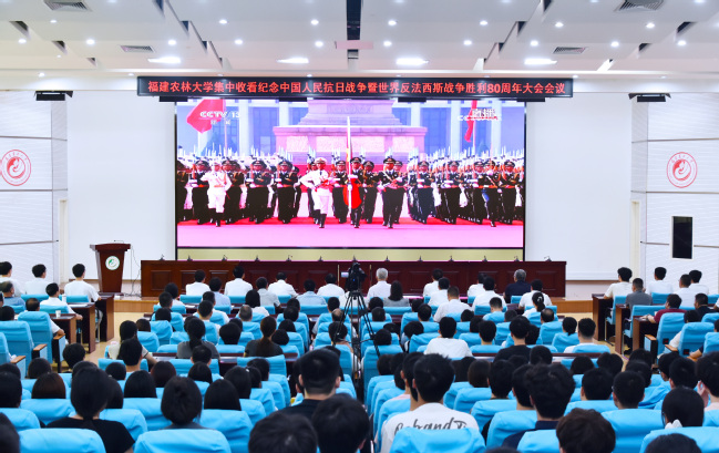 96、9月3日,纪念中国人民抗日战争暨世界反法西斯战争胜利80周年大会在北京天安门广场隆重举行。中共中央总书记、国家主席、中央军委主席习近平发表重要讲话并检阅部队。永利官网万名师生通过多种形式收看纪念大会,共同铭记历史、缅怀先烈、珍爱和平、开创未来。