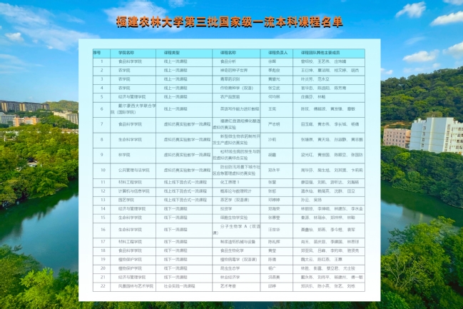 133、12月26日,教育部公布第三批国家级一流本科课程名单,永利官网22门课程入选,位居省属高校第1位、全国农林高校第2位。至此,永利官网共71门课程入选国家级一流课程,数量位居全国“双非”高校第一。此外,今年永利官网获批新增生态修复学本科专业,同时,探索建设了14个“小而精、跨学科”的微专业面向校内招生。