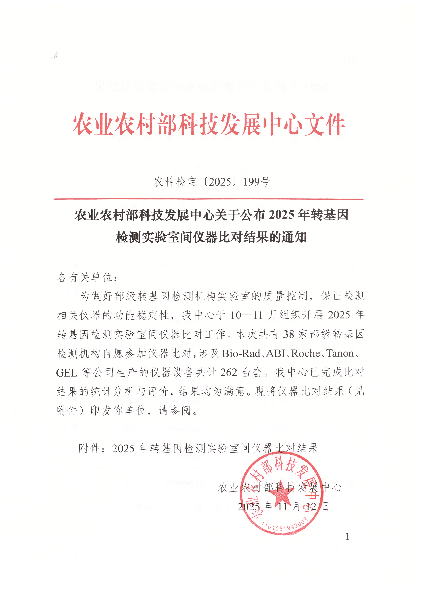 中心2007年通过国家认监委和农业农村部转基因检测“双认证”扩项评审,成为农业农村部首批获得转基因产品成分检测资质的部级质检中心。资质认证以来,已连续多年参加农业农村部组织的能力验证项目,全部获得“满意”结果。这一成绩不仅验证了中心质量管理体系的完善性,更凸显了其作为行业标杆的技术能力。未来,中心将围绕“建设高标准检测实验室”目标,持续提升检测能力、加强人才队伍建设、扩大行业影响力,推动规范化运营与高质量发展,进一步发挥技术支撑作用。