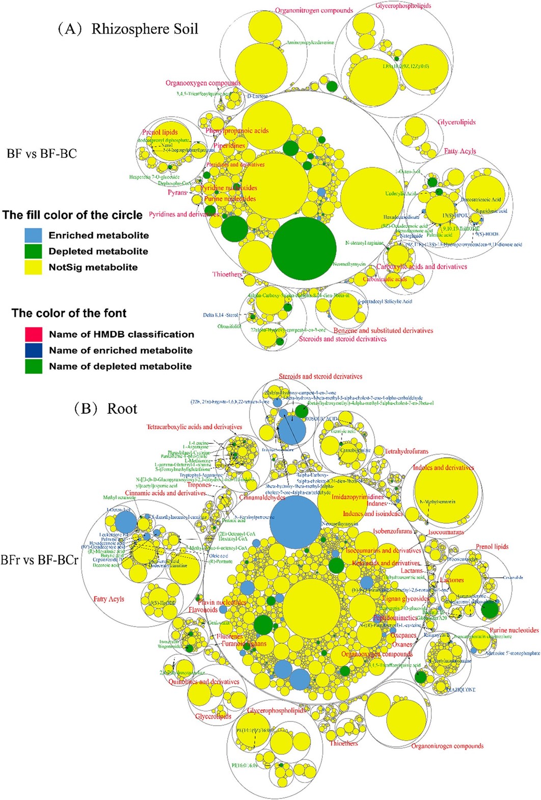 图 1 根际土壤与根系区域差异代谢物的MapTree图