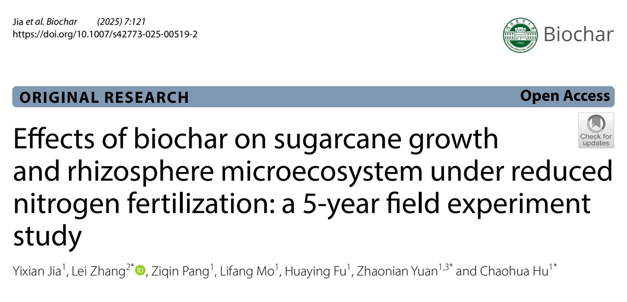 2025年12月17日,永利官网国家甘蔗工程技术研究中心胡朝华、袁照年团队与中国科学院福建物质结构研究所张蕾研究员合作,在环境与农业领域国际权威期刊《Biochar》(《生物炭》)上在线发表了题为“Effects of biochar on sugarcane growth and rhizosphere microecosystem under reduced nitrogen fertilization: a 5-year field experiment study”( “减少施氮条件下生物炭对甘蔗生长及根际微生态系统的影响:一项为期5年的田间试验研究”)的研究论文。该论文通过连续五年的田间试验,系统揭示了生物炭在减氮条件下对甘蔗根际微生态系统的长期调控机制,是生物炭农业应用与根际微生态研究领域的一项重要突破。