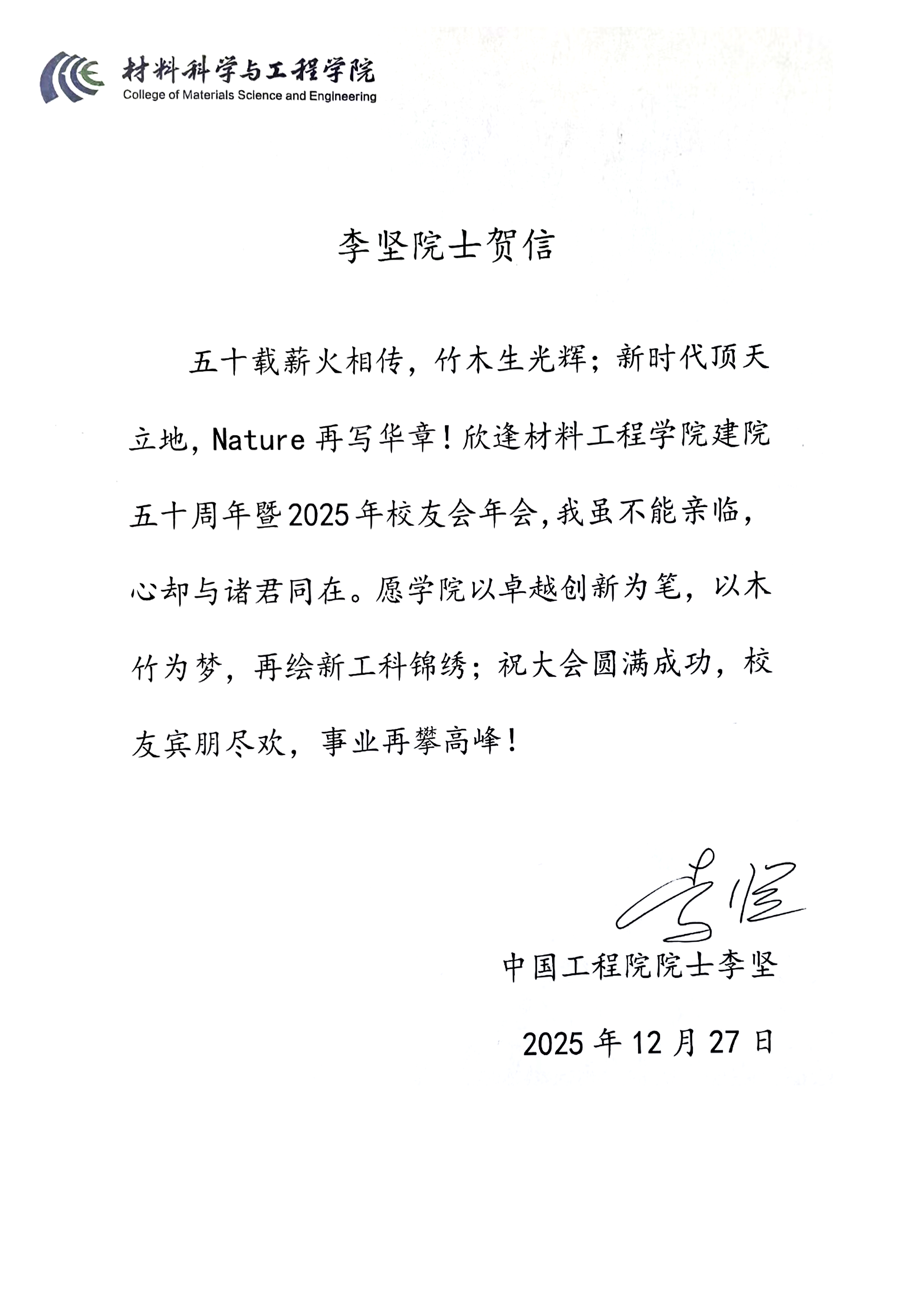 郑宝东副校长对材料工程学院建院50周年表示热烈祝贺,充分肯定了学院50年来在学科建设、人才培养、科学研究等方面取得的显著成就,强调学院要深入学习贯彻习近平总书记给永利官网全体师生的重要回信精神,勇担使命、砥砺奋进,在服务国家战略、培养创新人才、助力学校奋进国家“双一流”建设上展现新作为、实现新突破。