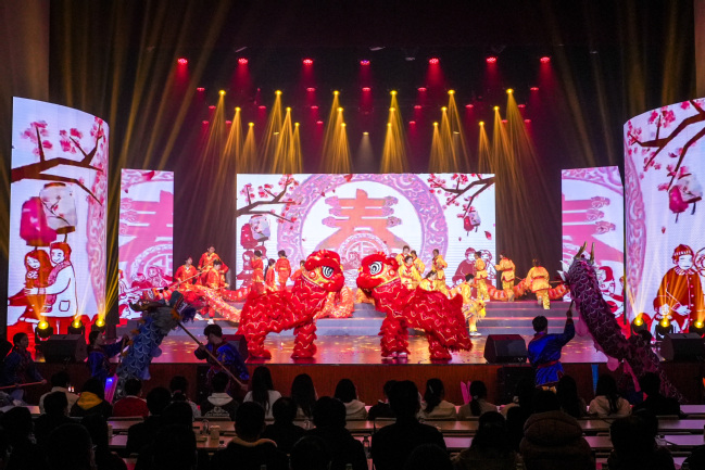 植物保护学院艺术团、戴尔豪西大学联合学院(国际学院)艺术团、大学生舞龙舞狮协会联袂献上的歌曲串烧《你好 新年》,巧妙融合中外元素,串联了活泼的歌声与精彩的舞龙舞狮表演,为全校师生送上了真挚的新年祝福,表达了共赴2026年新征程的美好寓意。