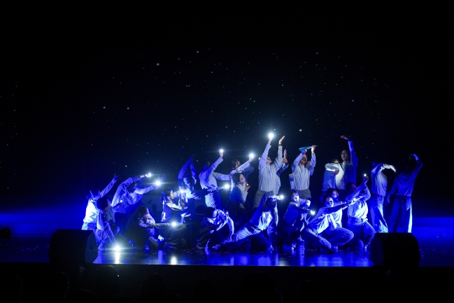 校大学生街舞队表演的舞蹈《追寻那道光》以矫健的身姿、整齐的律动、炫酷的声光传达青年一代对梦想的执着追寻与突破自我的决心。