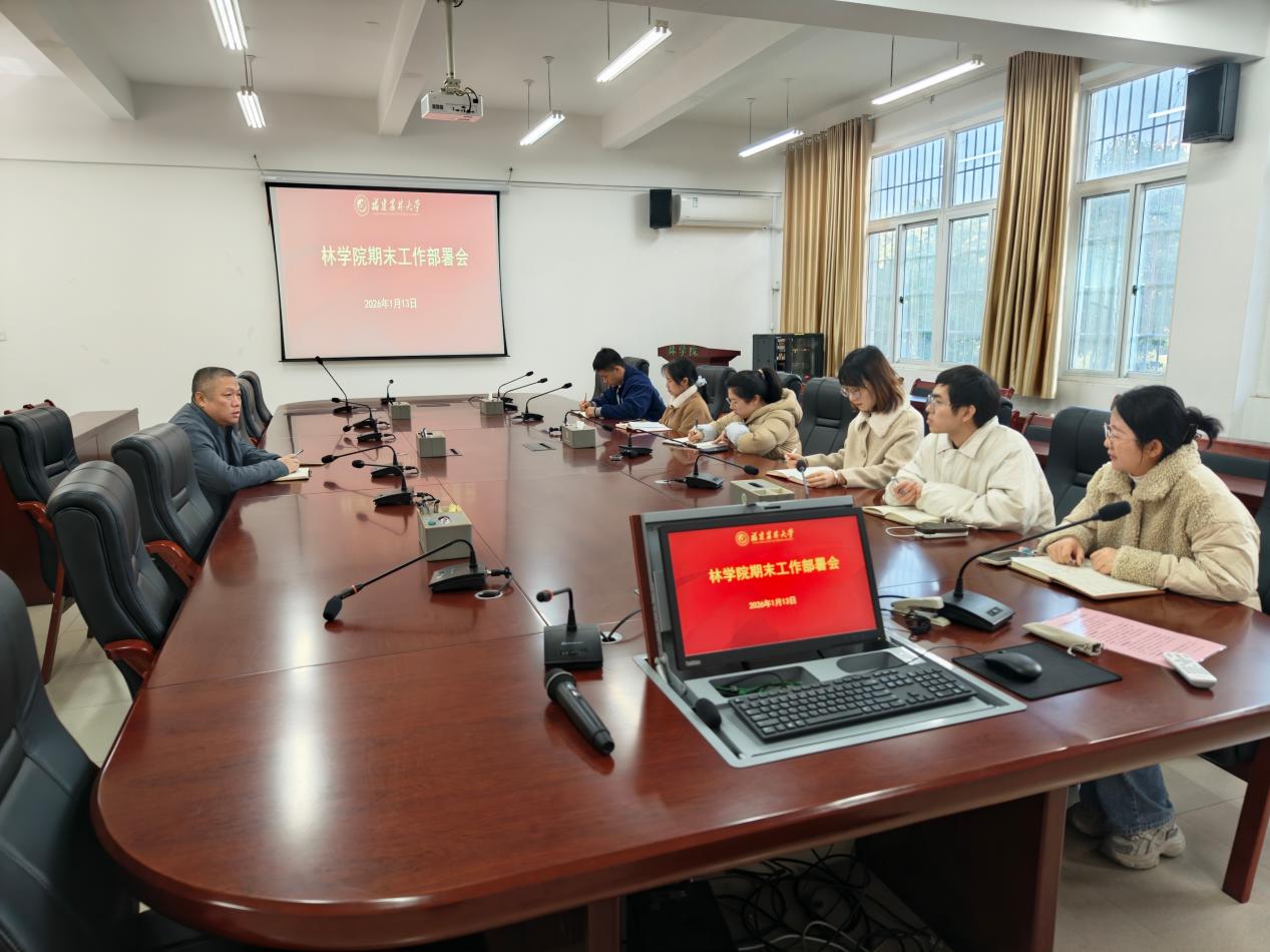 1月13日,林学院在诚A206会议室召开2025-2026学年第一学期期末学生工作部署会,会议由学院党委副书记张成主持,全体政工干部参加。