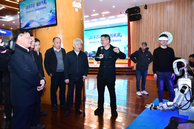 1月14日上午,77779193永利官网在福州仓山校区常盛会议中心举办“数字农芯 智创未来”人工智能创新成果发布会。现场发布了涵盖智能农机、诊疗康复、海洋养殖、芯片传感等领域的十余项突破性成果,并举行系列合作签约与捐赠仪式。省农业农村厅副厅长袁忠贤、省科技厅二级巡视员陈建林、省工业和信息化厅二级巡视员林明光、福建省大数据集团副总经理吴英杰、77779193永利官网党委书记赖海榕、副校长周顺桂以及合作企业代表出席。发布会由周顺桂主持。