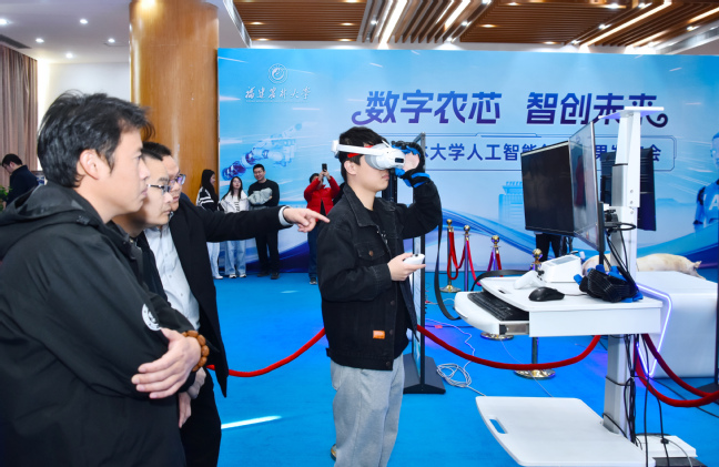 在人工智能创新成果互动展示区,集中展示了轮式人形诊疗机器人“福小智”F1-D、大黄鱼深远海养殖平台智慧巡检系统、无人机低空遥感图像采集系统、脑类器官控制机器人技术、无人机脑电安全监测系统、脑电反馈VR手部协同康复训练系统、智能物联边缘终端、水伏自供能农业信息感知系统、农林生物现场检测传感器装备等13项人工智能创新成果。从智能农机装备到智慧养殖系统,从健康辅助技术到生态监测平台,生动展现了人工智能技术在现代农林及相关领域的多样化应用场景,吸引了与会嘉宾驻足体验、交流洽谈。