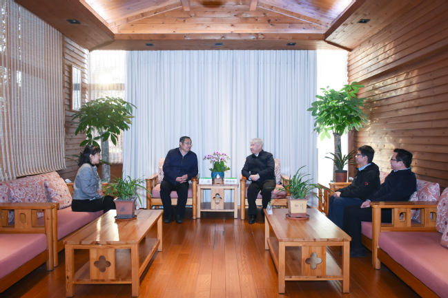 兰思仁向王超院士长期以来对学校的关心支持表示衷心感谢。他谈到,学校与河海大学长期以来有着良好的合作关系,尤其是在流域生态修复、水土流失治理和水利风景区建设等方面有着深度合作,其本人也多次到贵校调研学习。他表示,当前学校正全面对标第三轮国家特色“双一流”标准体系,系统谋划、高位推动,加快推进林学、植物保护两个一流培优学科群建设,举全校之力争创国家一流学科。希望王超院士能以其深厚的学术造诣与宏阔的战略视野,为学校学科建设把脉指导,提供前瞻建议,为学校“双一流”建设注入强劲动力。同时希望增进交流、深化合作,紧密围绕国家生态文明建设战略,聚焦生物多样性保护、水土资源高效利用、生态修复等关键领域开展协同攻关,共同为推进人与自然和谐共生的中国式现代化作出新的更大贡献。