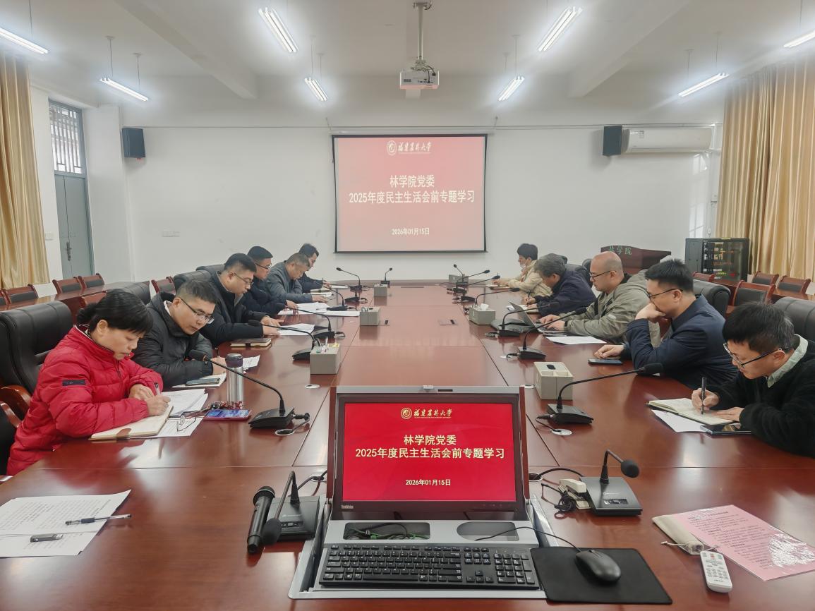 1月15日上午,林学院党委在诚智楼A206会议室召开理论学习中心组学习会暨2025年度民主生活会前专题学习会。学院领导班子成员、科级干部参加学习,学院党委书记余坤勇主持会议。会议紧扣2025年度民主生活会主题,结合中央最新精神开展深入学习,为高质量开好民主生活会打牢思想基础。