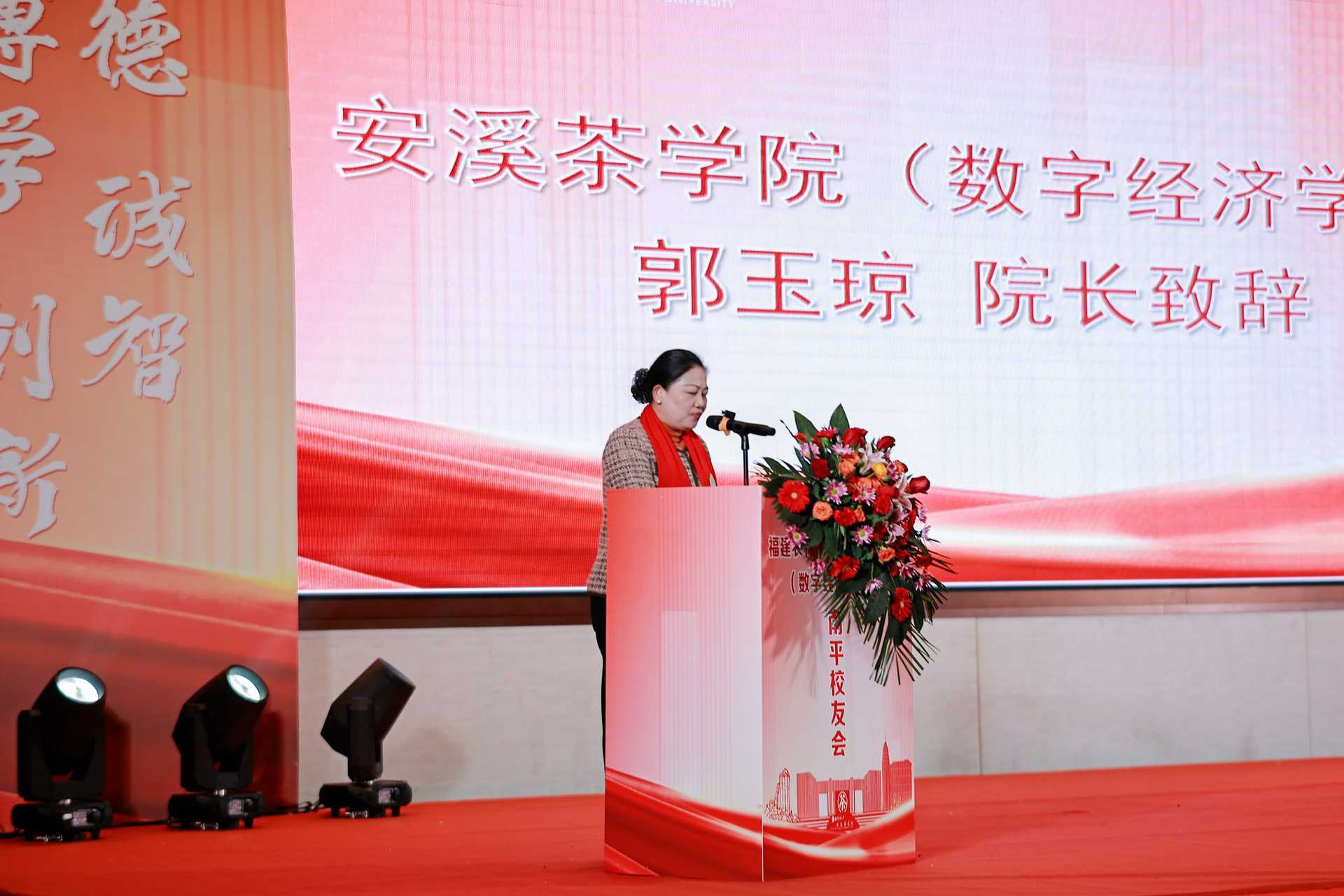 1月17日,安溪茶学院(数字经济学院)南平校友联络处成立大会在世界文化与自然双遗产地武夷山举行。本次大会以“绿水青山孕茶香,南平校友谱新章”为主题,旨在凝聚在南平地区工作生活的校友力量,服务区域茶产业与数字经济发展。副校长林庆藩、校友总会副会长雷国铨,学院党委书记黄成茂、院长郭玉琼等校院领导,武夷学院茶与食品学院院长叶江华、武夷山市武夷街道党工委书记陈烈等地方嘉宾,与160余位校友欢聚一堂,同叙情谊,共谋发展。学校部分地方及学院校友代表到场祝贺。