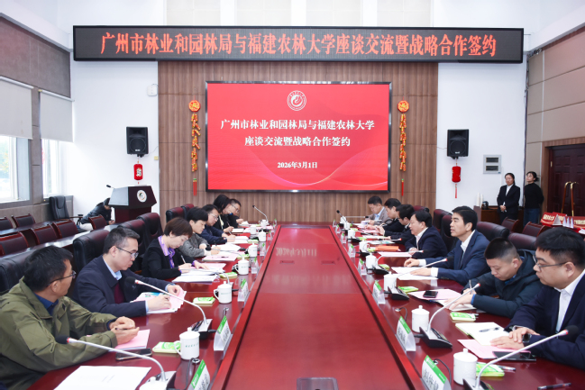 3月1日,广州市林业和园林局党组书记、局长孙玥,副局长阮琳一行来永利官网调研交流,双方在明德楼武夷厅召开座谈交流会,并签订战略合作协议。校长兰思仁、副校长林庆藩陪同调研和座谈。座谈交流暨战略合作签约仪式由林庆藩副校长主持。