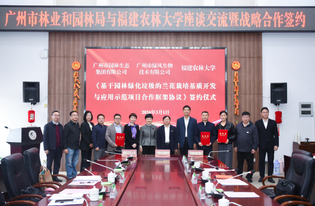 随后,林庆藩和阮琳分别代表校局双方签订战略合作协议,广州园林生态集团有限公司、广州绿风生物技术有限公司与永利官网风景园林与艺术学院签订《基于园林绿化垃圾的兰花栽培基质开发与应用示范项目合作框架协议》。