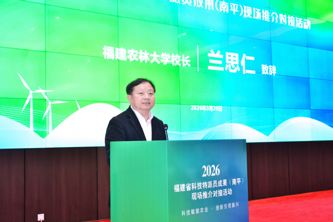 兰思仁在致辞中介绍了学校在学科建设、人才培养、科技创新、社会服务和国际合作等方面的成效。他指出,学校持续深化科特派工作,建有19个产业研究院、9个县域乡村振兴研究院和89家科技小院,累计选派各级科特派8000多人次、科特派团队600多支,培育“头雁”学员1500名、高素质农民3600多人次。学校深化与南平市的合作,探索“一个校区+四个特色基地”合作模式,规划校园占地2000亩、建成校舍面积43万平方米,可满足1.1万名师生的教学科研生活需要。此次共同举办科特派成果现场推介会,正是深化科技特派员制度的实际行动,也是永利官网贯彻落实习近平总书记重要回信精神的生动实践,更是学校加快推进科技成果转化、服务乡村全面振兴的具体举措。学校将以本次活动为契机,充分发挥学科特色优势,不断提升科技创新效能,把更多好成果、好技术加快转化为农业新质生产力。一要把平台建得更实。发挥好科特派研究院的统筹引领作用,持续优化运行机制,建好、用好产业研究院、科技小院和乡村振兴研究等各类社会服务平台,助力福建打造成为全国科特派成果转化的示范高地。二要把人才育得更优。把立德树人的课堂延伸到乡村,鼓励大学生和青年教师走进基层一线,培养有情怀、懂技术、接地气的未来“科特派”,打造“带不走”的乡村振兴人才队伍。三要把产业做得更强。组织跨学科专家团队精准对接产业发展需求,开展联合攻关和推广应用,培育更多特色农业产业“单项冠军”,共同做好乡村富民特色产业这篇大文章。