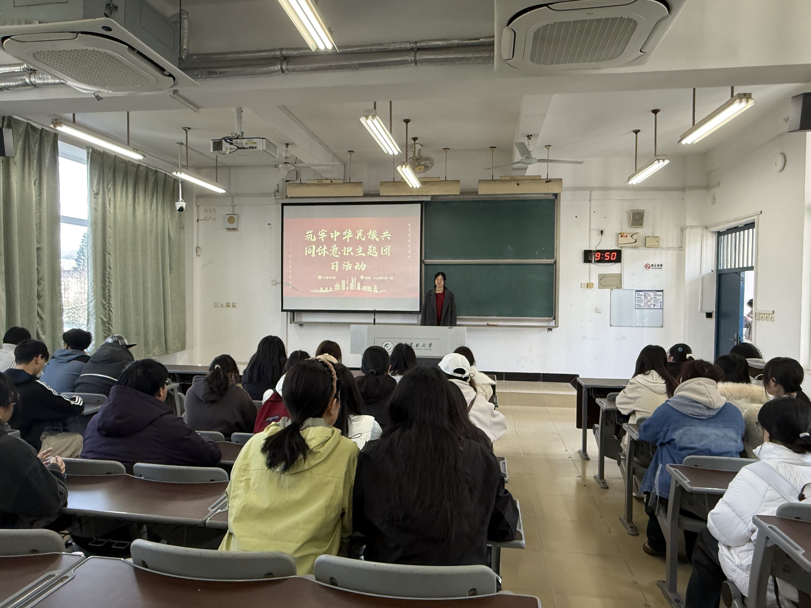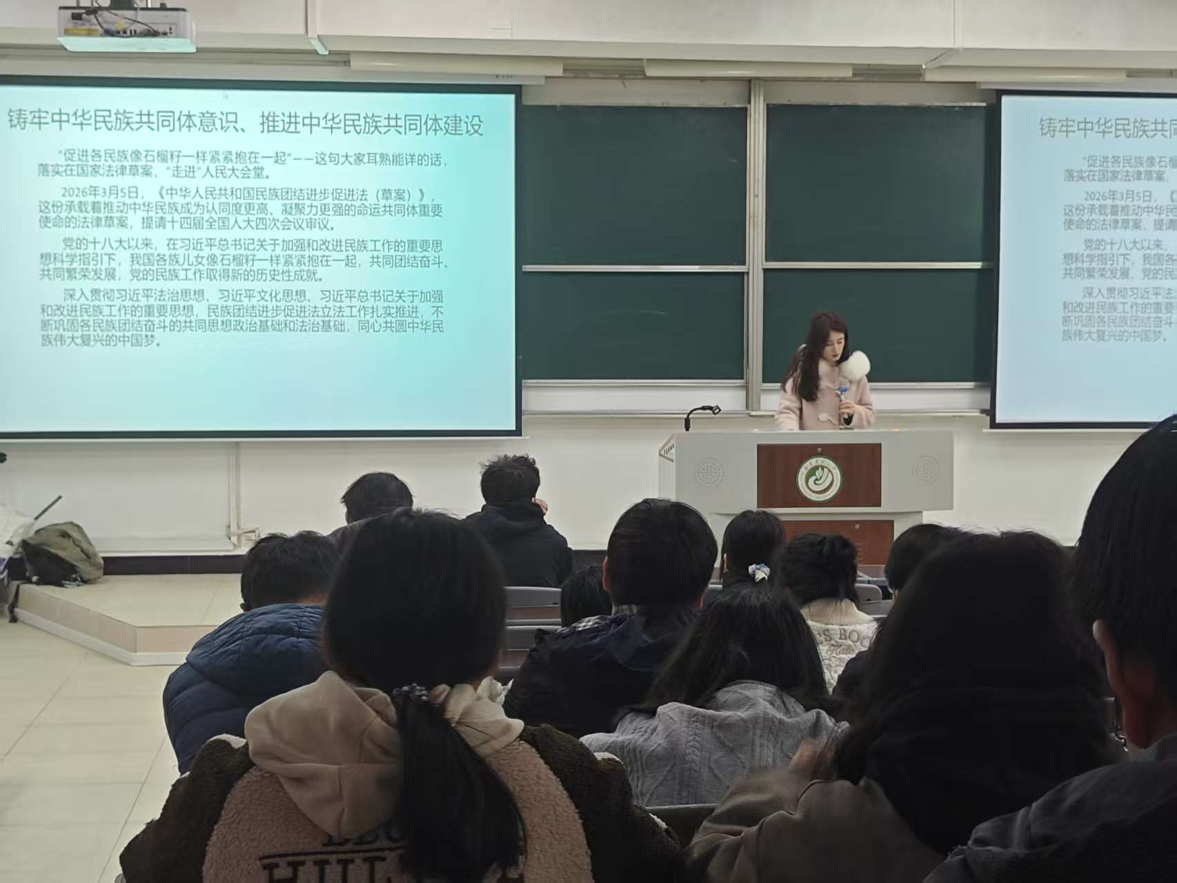 活动期间,各班级积极响应,纷纷组织开展“铸牢中华民族共同体意识”主题团课。团课上,同学们通过观看专题视频、学习民族政策法规等形式,深刻领会中华民族共同体意识的丰富内涵和时代价值。来自藏族、土家族等不同民族的同学们主动走上讲台,结合自身成长经历,生动讲述本民族的风土人情、传统节日、服饰特色和饮食文化,分享家乡民族团结的感人故事。台上台下互动热烈,掌声不断,在真情交流中增进了各民族同学之间的了解与认同。