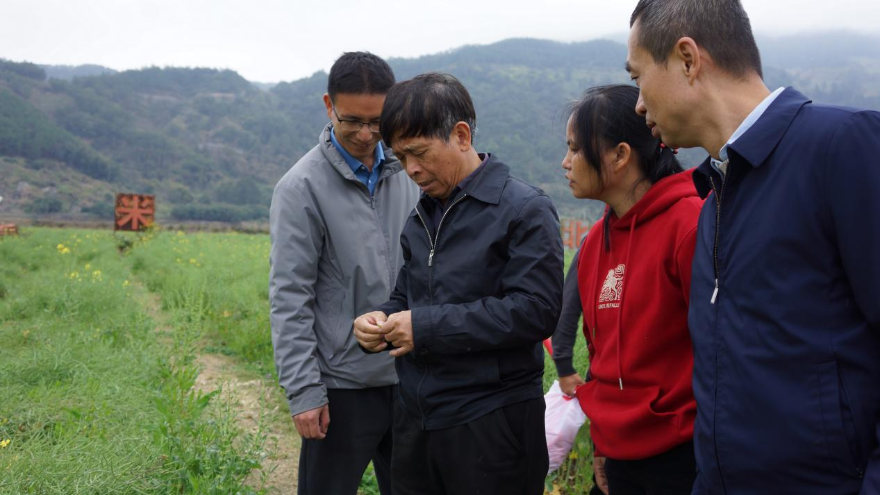 在罗源特种稻科技小院对接企业松山镇北山湾农业专业合作社的油菜基地,专家团队开展稻菜轮作茬口衔接技术指导。这片100多亩的“稻-再-油”周年轮作示范基地,在专家团队的持续跟进指导下,长势喜人,只待丰收。特种稻科技小院首席专家林文雄针对水稻育秧、油菜收获、土地平整、插秧种植的具体茬口衔接工作给出具体建议。