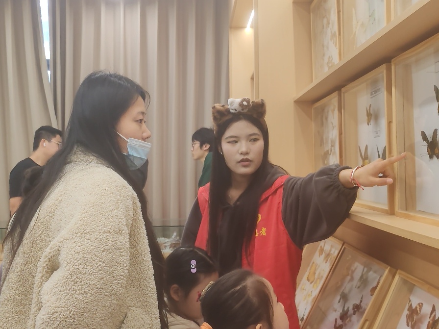 科普的触角也在周末延伸至博学楼四楼的昆虫标本馆(高校星火馆)。学院志愿者化身讲解员,向来校参观的亲子家庭娓娓道来标本背后的故事。孩子们不仅参观了琳琅满目的昆虫标本,还在指导下使用体视镜观察昆虫的微观结构,亲手体验植物拓染与昆虫折纸。“我认识了好多昆虫,也做了个很好看的蝴蝶折纸!”稚嫩的话语里,是探索自然的欣喜。这场与昆虫世界的“零距离”接触,在孩子们心中悄然点燃了科学探究的热情。