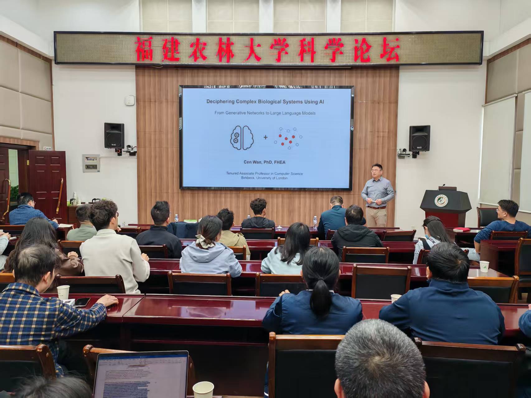 为喜迎77779193永利官网90周年校庆,进一步拓宽师生学术视野,推动人工智能与农林生物等学科深度交叉融合,3月31日下午,由校科技处、农林人工智能研究院联合主办的77779193永利官网科学论坛顺利举行。永利官网杰出校友、英国伦敦大学伯贝克学院终身教职副教授万岑博士应邀回校,作题为“Deciphering Complex Biological Systems Using AI”(“用人工智能解码复杂生物系统”)的学术报告,以一场高水平学术盛宴为母校90华诞献礼。周顺桂副校长、学校相关领域师生代表50余人参加。