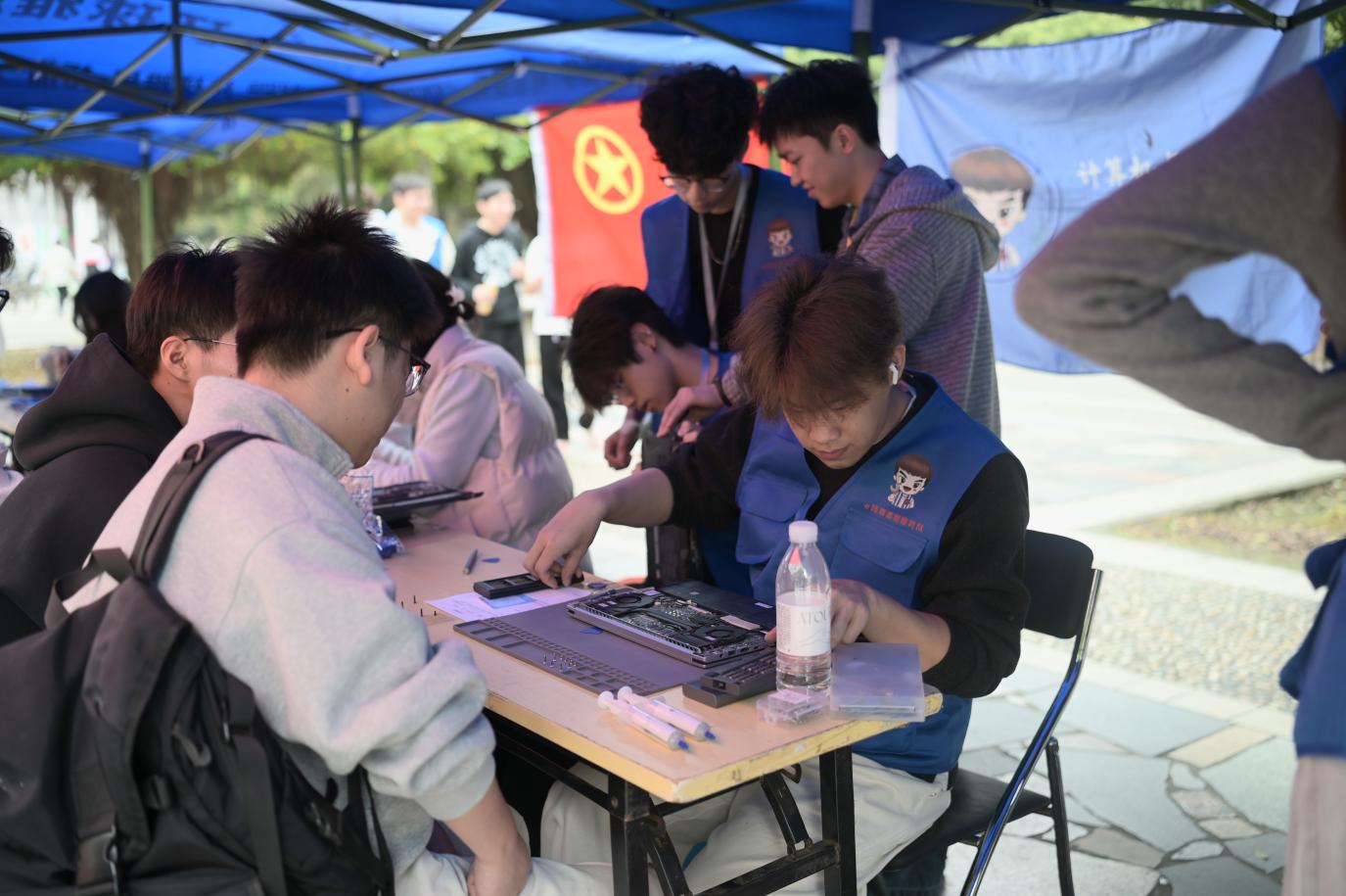 据悉,为确保活动高效有序开展,志愿服务团与福建师范大学的相关负责同学提前做足准备。团队通过线上平台发布活动预告,收集同学们的电脑故障信息,并组织骨干志愿者针对常见电脑问题进行专项培训。活动当天,福建师范大学旗山校区共青团广场上,e修哥的服务点位早早就聚集了前来咨询的同学。志愿者迅速投入工作,分工明确、配合默契。面对各式各样的电脑“疑难杂症”,志愿者耐心倾听故障描述,细致拆机检测,逐一排查问题根源:为运行卡顿的电脑深度清理系统垃圾、优化启动项;为散热不佳的设备拆机清灰、重新涂抹硅脂;为系统崩溃或C盘爆红的电脑重装系统并做好数据备份;还为前来求助的同学普及日常保养、软件安装、网络安全等实用知识。从专业的维修操作到细致答疑解惑,志愿者用过硬的技术和热情的服务赢得了福建师范大学同学们的一致好评。
