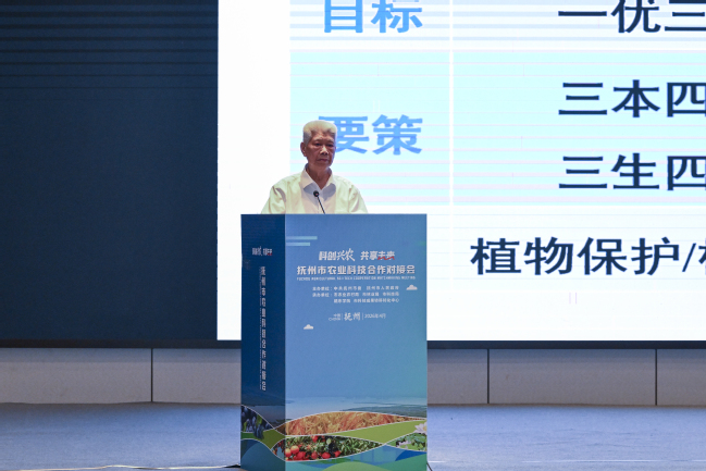会上,永利官网谢联辉院士作《植物健康与人的健康——植物优质高产的感悟》专题报告,从植物健康与人类健康的关联视角,分享农业绿色高质量发展前沿理念,为抚州农业发展提供重要学术指引。国家食物与营养咨询委员会主任陈萌山围绕“对接国家发展战略依靠新质生产力赋能 推动抚州农业特色产业高质量发展”作专题报告;中国科学院院士、华中农业大学教授张启发,中国工程院院士、湖南农业大学教授邹学校,中国工程院院士、河南农业大学教授康相涛分别就农医结合推进全谷物行动、辣椒生产机械化、种养循环助力乡村全面振兴等主题展开分享交流。