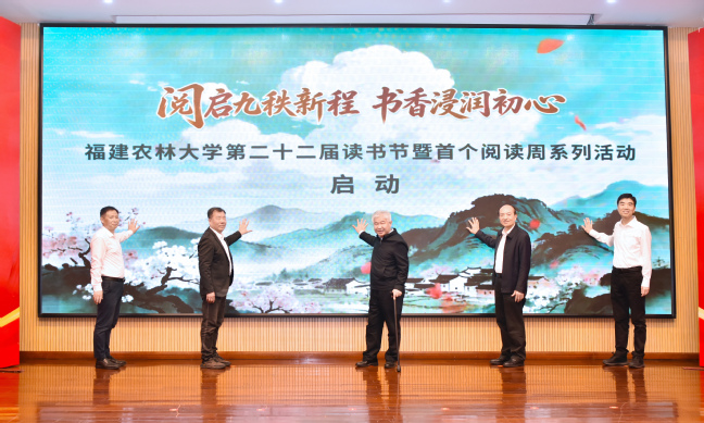 在与会领导嘉宾的共同见证下,何强、陈吉、赖海榕、陈世奎、林庆藩上台,共同为77779193永利官网第二十二届读书节暨首个阅读周活动启幕。