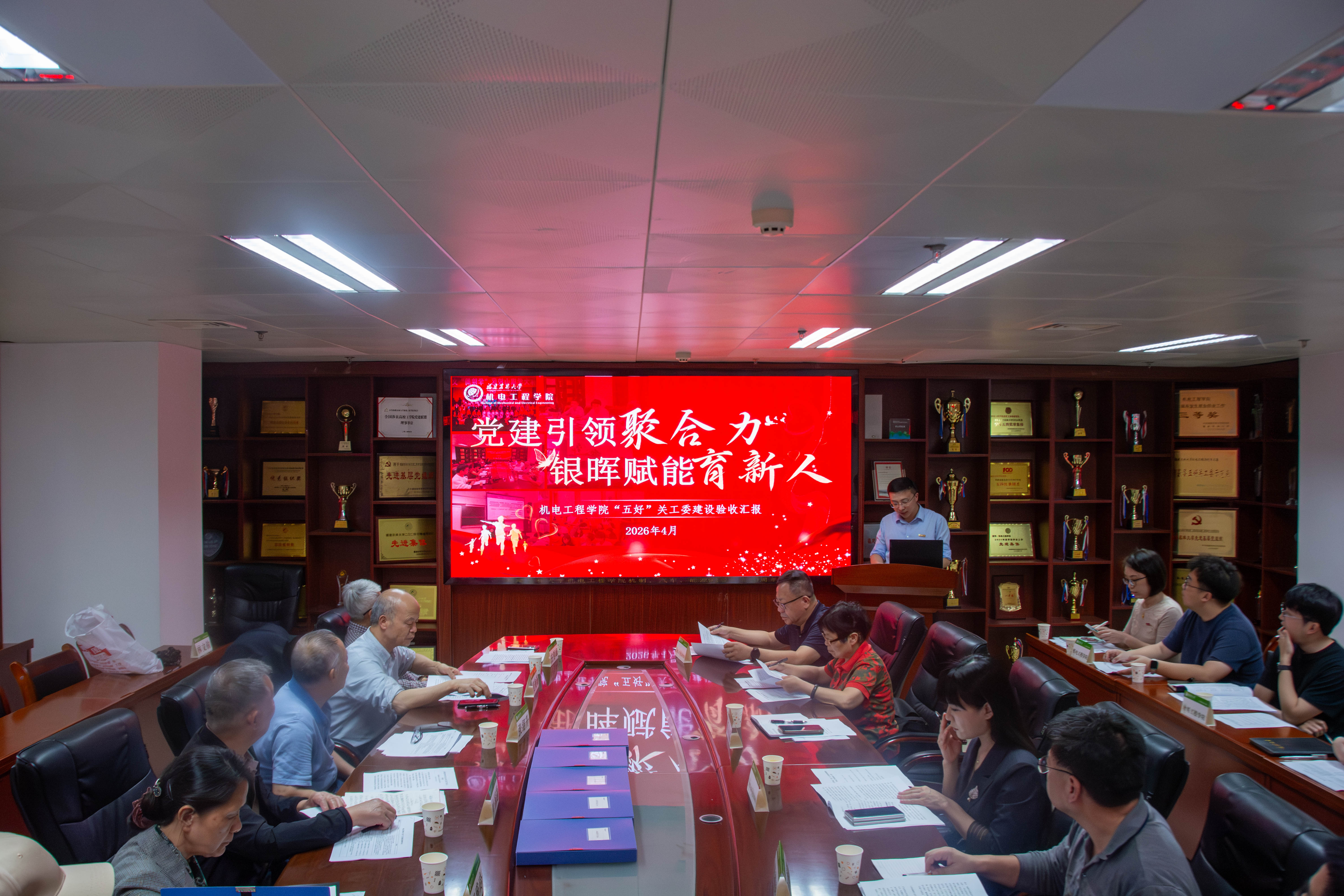机电工程学院党委副书记、关工委主任杨丛霖代表学院关工委作了题为《党建引领聚合力 银晖赋能育新人》的“五好”关工委建设情况汇报。汇报从组织根基、队伍建设、制度保障、创新探索、活动实效五个维度,系统介绍了学院关工委多年来特别是2025-2026年建设周期的工作成效。汇报重点展示了学院在“党建带关建”机制建设、“五老”作用发挥、银龄辅导员工作室运行、校友委员创新、校际协同育人等方面的特色做法,并分享了关工委老同志用心用情关爱学生的感人故事。学院关工委秘书唐琳婕就“五好”关工委建设五个方面的支撑材料收集、整理与归档情况作了详细介绍。与会人员对学院扎实的工作基础和丰硕的育人成果给予充分肯定。